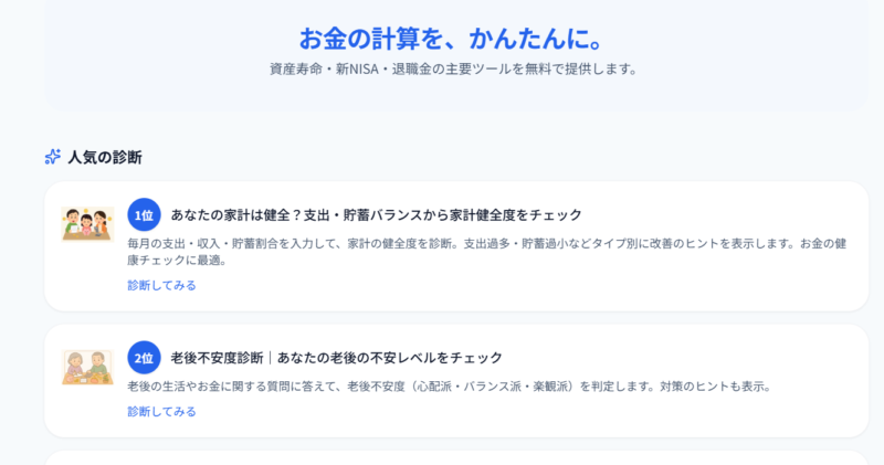 最近、Astro + React構成で複数の診断ツール(家計・投資・FIREなど)をまとめた静的サイトを構築しました。